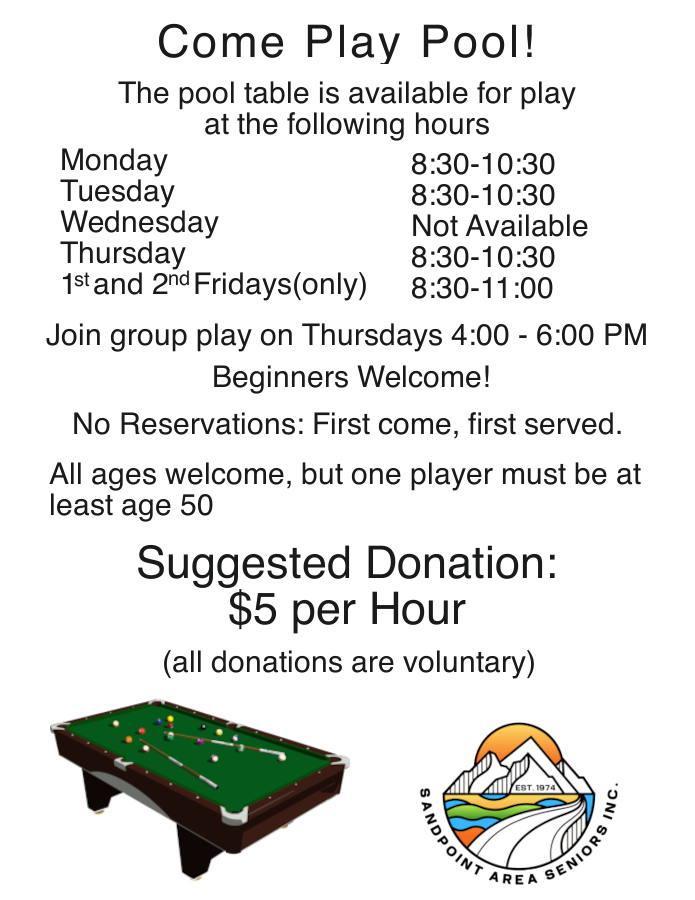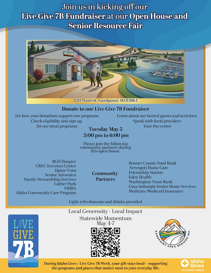 Sandpoint Area Seniors, Inc. combats food insecurity and social isolation among the most vulnerable members of the senior community in Bonner County. We provide onsite and home-delivered meals as well as a gathering place for social, informational, recreational, and wellness programs.